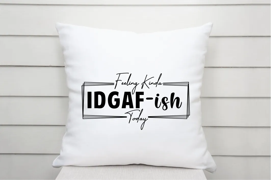 Pernă ,,IDGAF - ish” 40,00 RON Husa alba din poliester mat. Interior din material textil cu umplutura de melana. Fermoar alb. Dimensiune 40cm x 40cm. Spălare la mașină: 30°C. Personalizare prin sublimare.