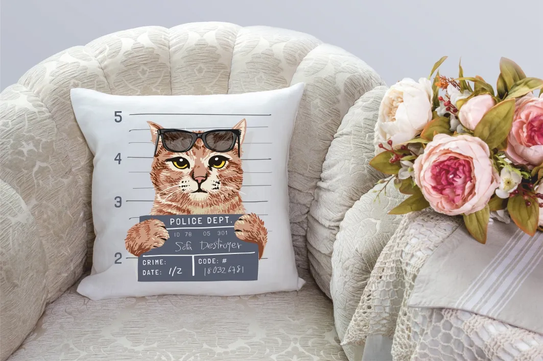Pernă ,,Sofa Destroyer” 40,00 RON Husă albă din poliester mat. Interior din material textil cu umplutură de melană. Fermoar alb. Dimensiune 40cm x 40cm. Spălare la mașină: 30°C. Personalizare prin sublimare.