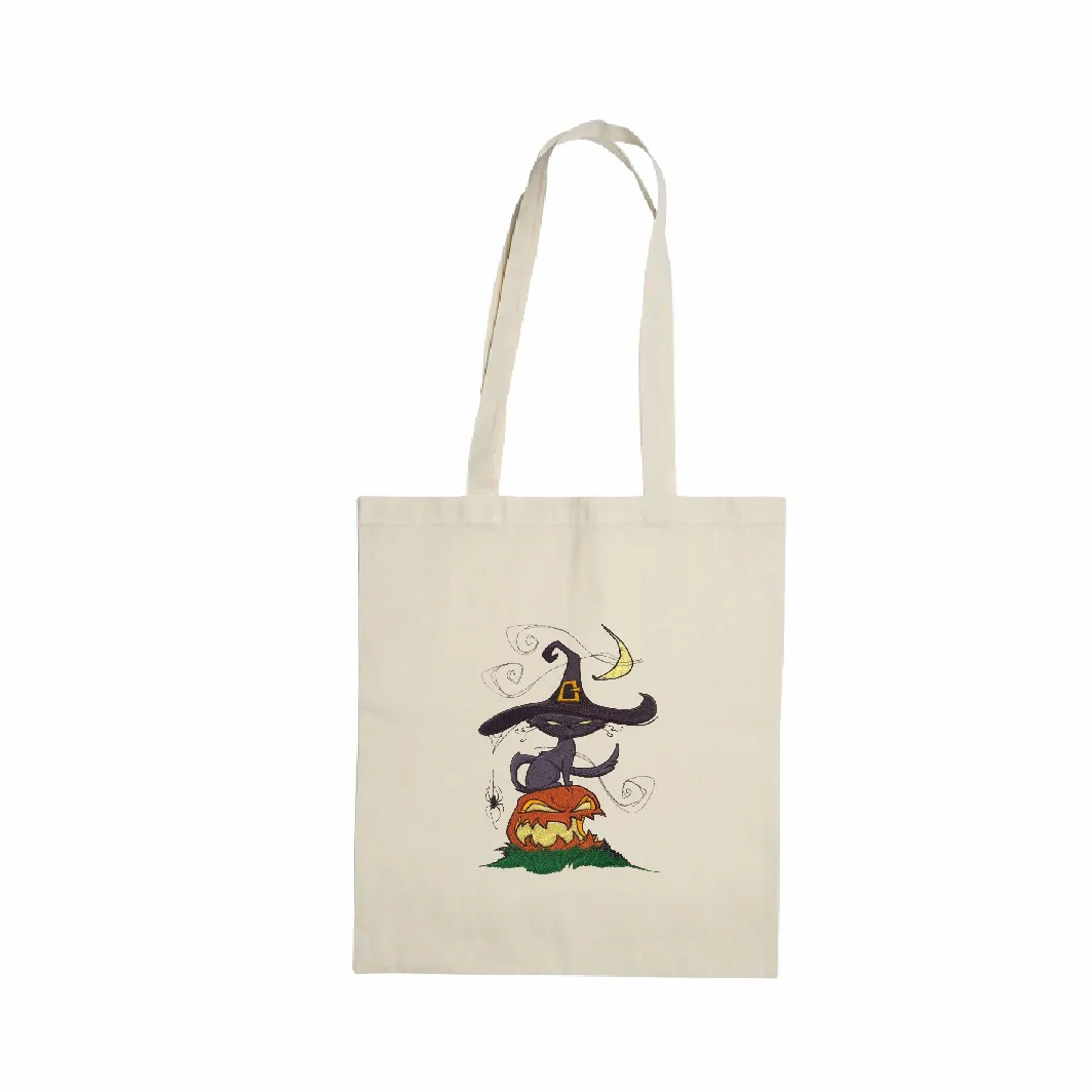 - Fabricată din țesătură de bumbac, cu mâner lung din bandă de aceeași culoare.