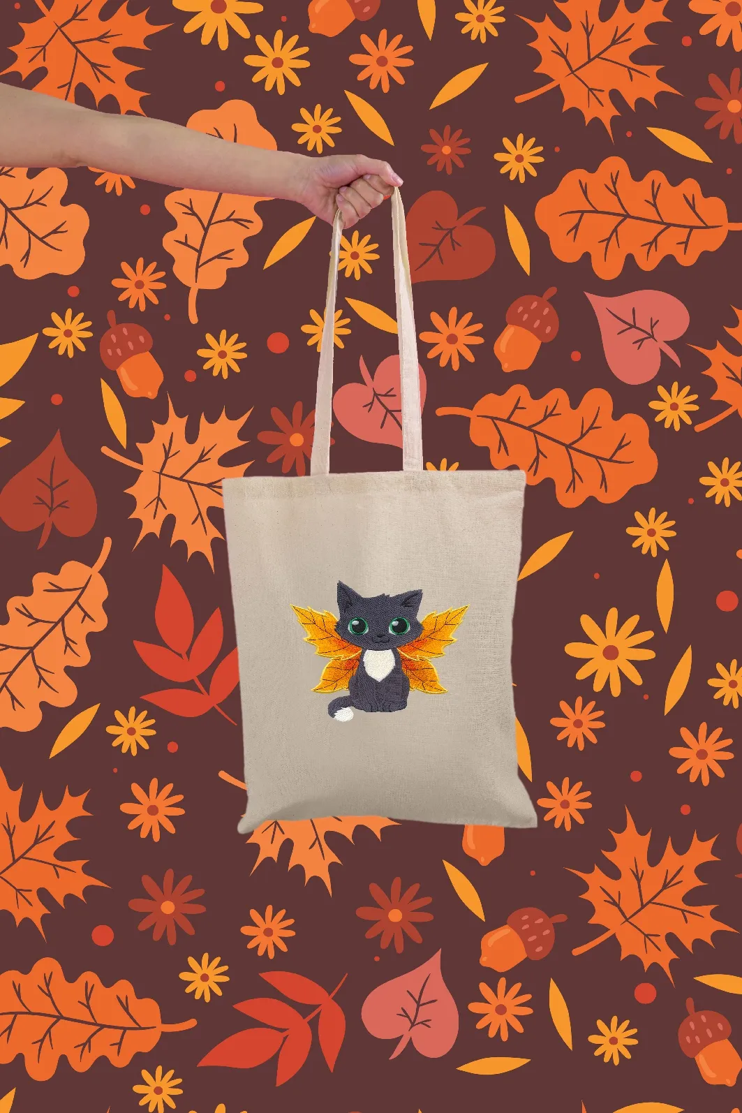 Sacoșă textilă brodată Fall kitten