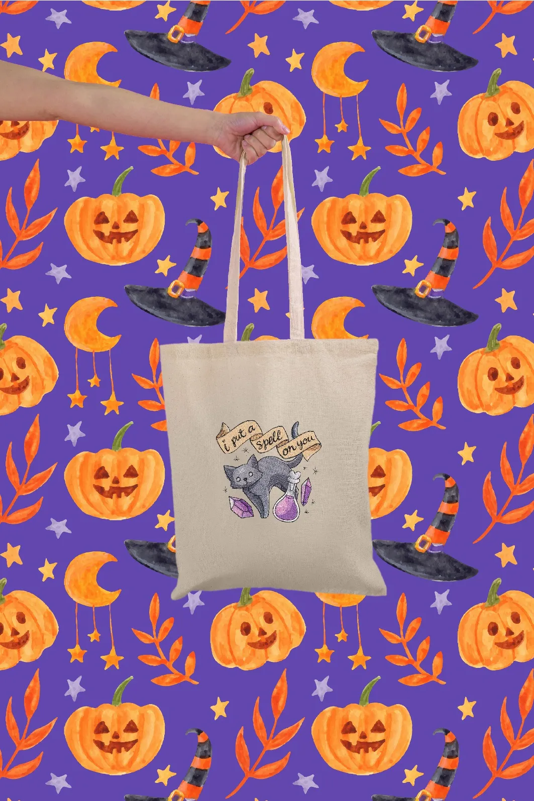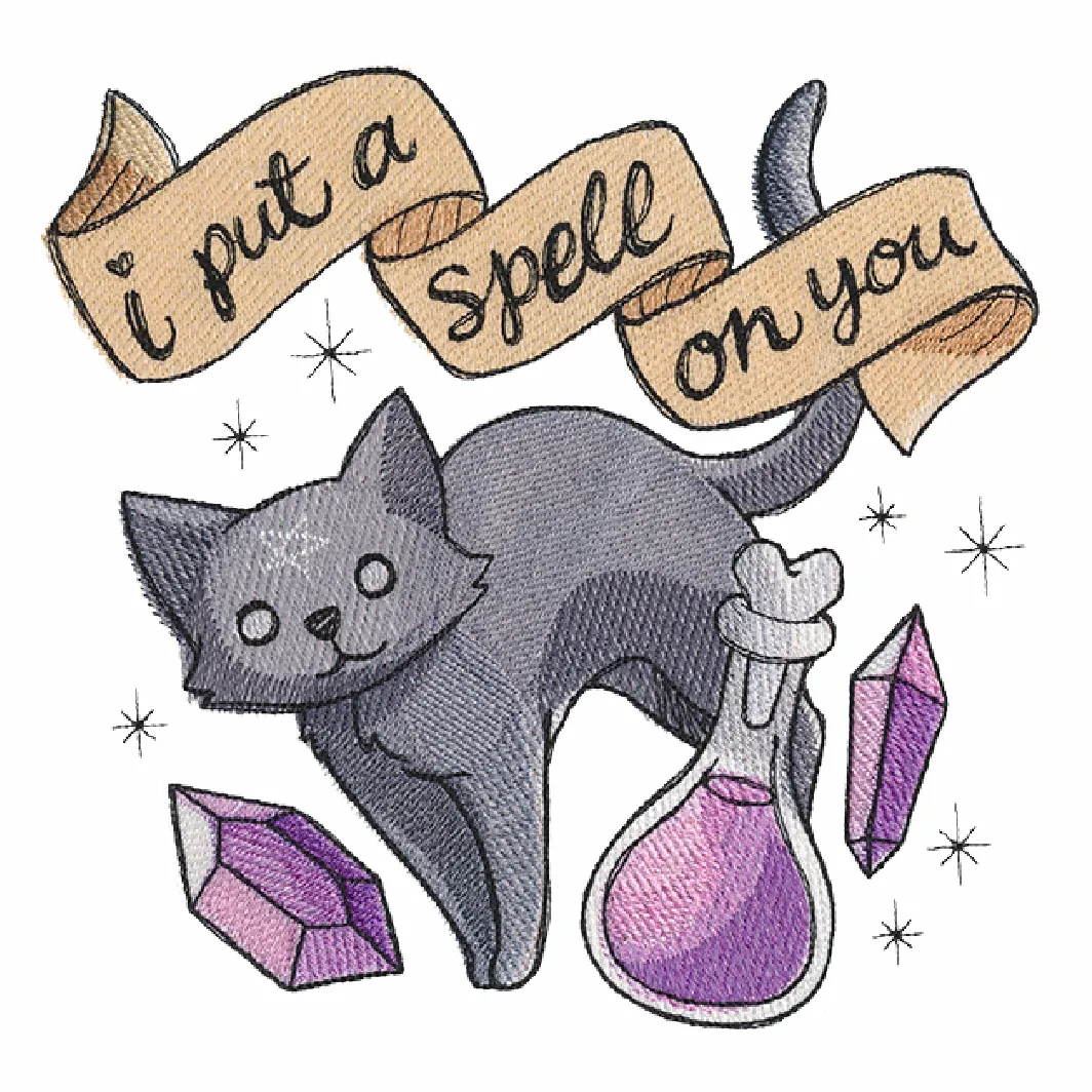 Sacoșă textilă brodată Kitten spell