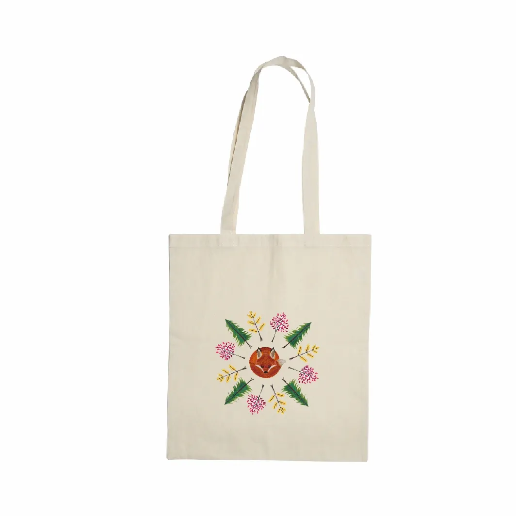 - Fabricată din țesătură de bumbac, cu mâner lung din bandă de aceeași culoare.