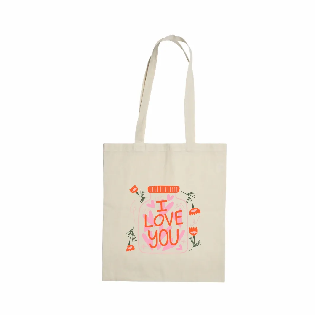 - Fabricată din țesătură de bumbac, cu mâner lung din bandă de aceeași culoare.
