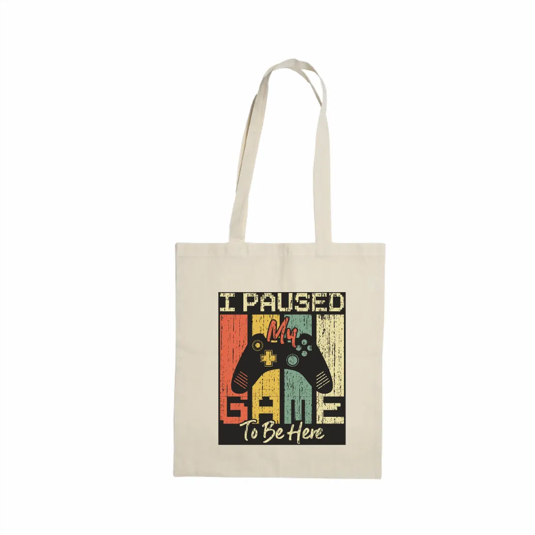 - Fabricată din țesătură de bumbac, cu mâner lung din bandă de aceeași culoare.