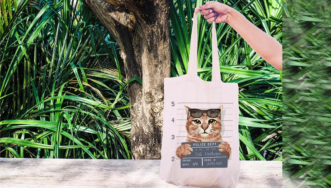 - Fabricată din țesătură de bumbac, cu mâner lung din bandă de aceeași culoare.