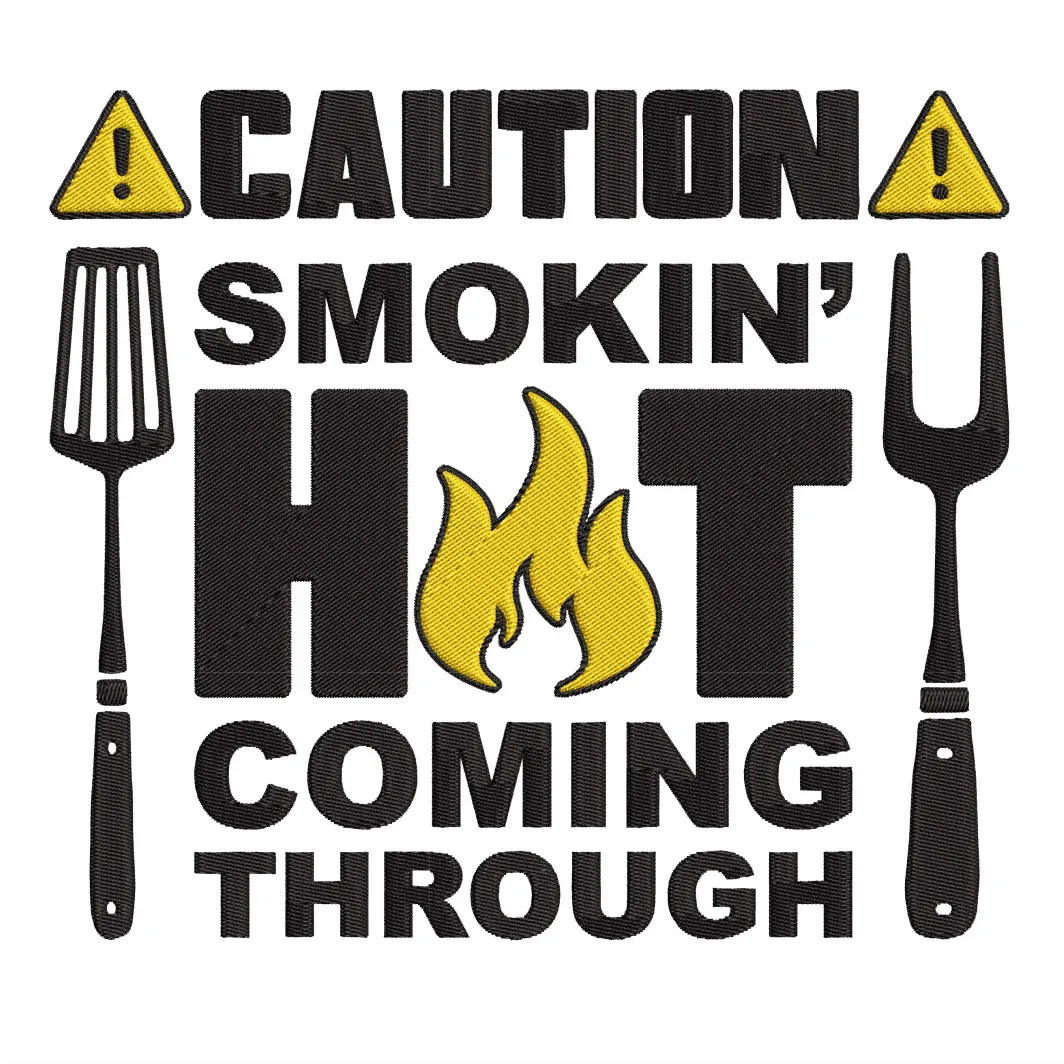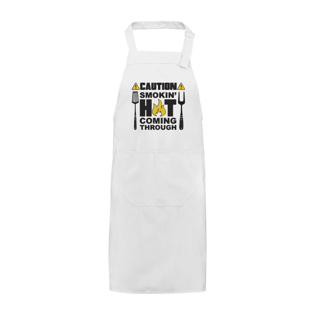 Design Șorț Brodat Text Caution Smokin Hot Cadou Special Femei Bărbați Bucătar Grill Barbeque