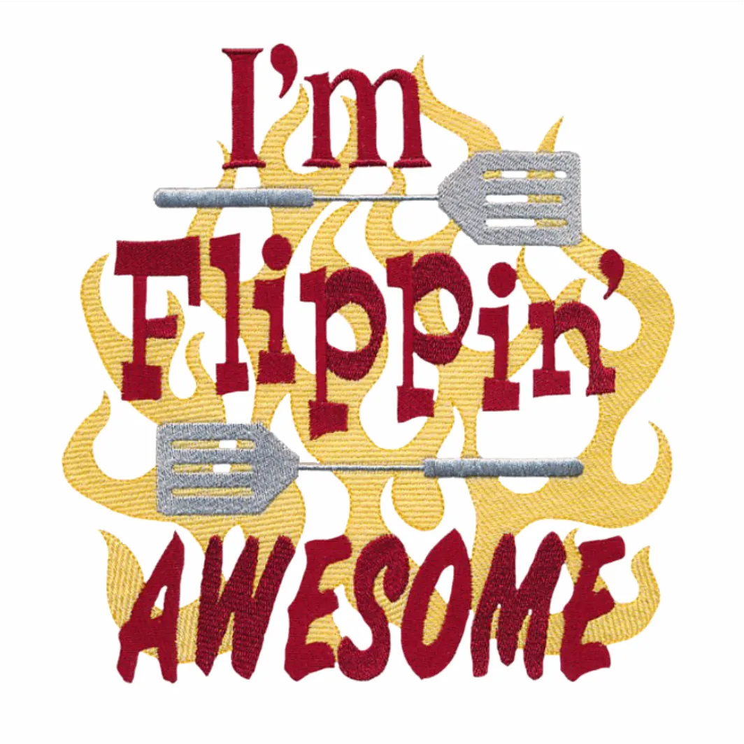 Design Șorț Brodat Text Flippin Awesome Cadou Special Femei Bărbați Bucătar Grill Barbeque Petrecere